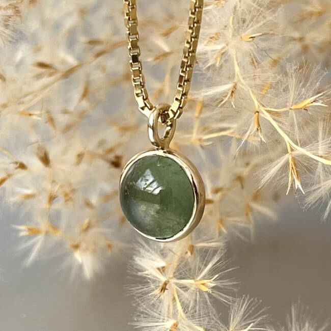 Anhänger "Tilda" erinnert mit seinem Erscheinungsbild an Jade. Das sanfte Grün wirkt sehr natürlich und symbolisiert für uns die Kraft und Ruhe der Natur.